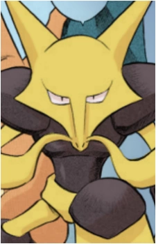 Alakazam (PMD) is a character from the Pokémon Mystery Dungeon series and a rollable husbando in Mudae. He is a Psychic-type Pokémon that is the leader of Team A.C.T., a Gold Rank rescue team. He works alongside Charizard and Tyranitar.
