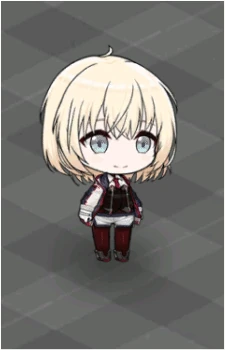 As a playable character, she is overly shy and a bit afraid of little things. Even her default chibi animation features her being afraid of a Manjuu, a little bird inserted in the game looking like a chick as a wordmark of the company Manjuu Co. Ltd, one of the game's developers. She also takes care of her planes and knows their names by heart.