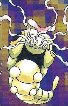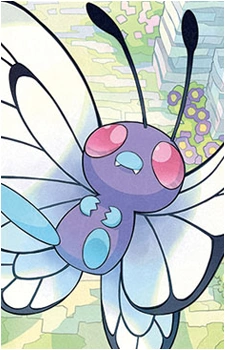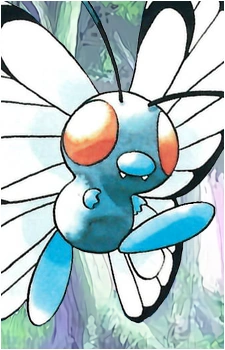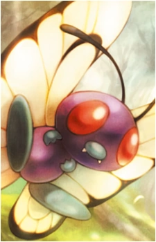 Caterpie is a rollable game and animanga character primarily in the Pokédex series in Mudae. Caterpie is a Bug-type Pokémon that evolves into the Bug-type Pokémon Metapod, and eventually into the Bug/Flying-type Pokémon Butterfree. Butterfree has the ability to become Gigantamax Butterfree by Gigantamaxing. Caterpie, Metapod, and Butterfree were introduced in the first generation of Pokémon; Gigantamax Butterfree was later introduced in the eighth generation.
