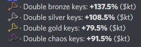 Note that values over 100% are essentially "maxed out" and have no additional effect. However, not all types of keys max out at the same level of investment.