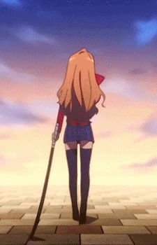 Taiga Aisaka is one of the main protagonists in the Toradora! series. She is a deconstruction of the "tsundere" character archetype, not having the "bipolar" side that the stereotype typically has. Even though she is close to adulthood, her small stature makes others think she could be a child. Taiga even despises people referring to this trait. She can be sadistic and sarcastic, but even if she seems very aggressive, she is actually a kind person, especially towards people she trusts.